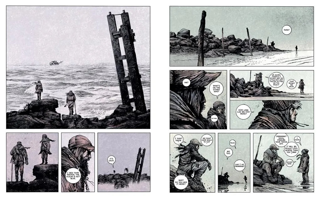 McCarthy's Pulitzer winning apocalyptic novel, The Road, follows a Father and Son's epiv journey to the Pacific Ocean from American's Destroyed midlands. The world has been destroyed and the wanderers are going through absolutely dangerous and unpredictable abandoned land. They are two survivors, but they meet every kind of villain and a few good men along the way.The ending is a bit controversial--some think the boy, after his father's death, is saved; but a lot of critics says that he has fallen into a cannibal family. McCarthy doesn't promote hope--he's stuck on surviving a cruel and chaotic world.
